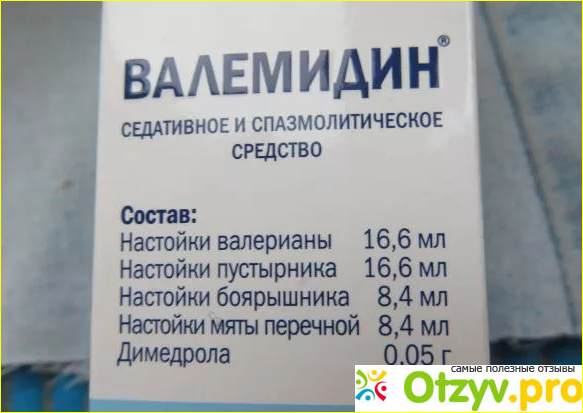 Недавно нашла сравнительно новый для себя препарат — Валемидин. Это тоже настойка трав на спирту, только с добавлением интересного компонента — димедрола. Бояться его не стоит, это хорошо проверенное годами средство, не опасное для людей.
