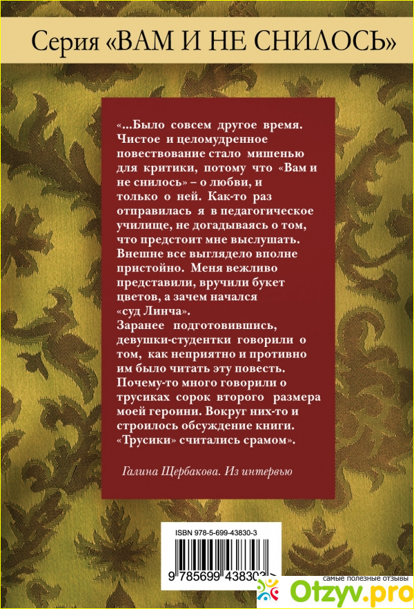 В книге Катерины Щербаковой "Тебе и не снилось. Пятнадцать лет спустя" то и дело натыкаешься на тупиковые мысли, держишься не разумно и стереотипно - мол, все догнали реальность суровой перестроечной жизни, а ни о каких успешных результатах и перспективах и не мечтаешь. Однако книга сложная, и она показалась интересной именно потому... причиняющие дискомфорт и даже боль, в том числе элементы гнева за трусость, неуспех и пассивность персонажей, в какой-то мере отражают индивидуальную модель судьбы заколдованного странника советского периода кажущейся стабильности и прогресса, с треском провалившегося в девяностые годы. Предварительное знакомство " матери, не читать! и "дочки, не пишите "хотя бы по диагонали, пока не прочитаю ссылки в" не сон " в голове, если не эффект черно-вулканический и не причина ничего, кроме желания написать в адрес Катерины Щербаковой очередную пакость о том, что это оскорбительно для памяти её мамы.