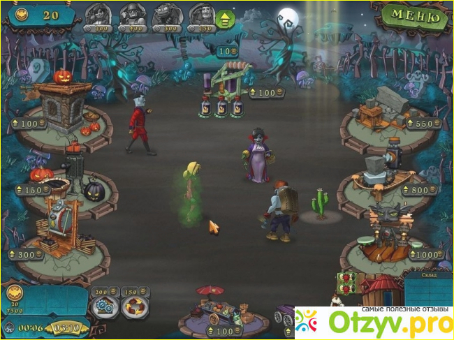 Нужно собирать -тыквы, чеснок, кровь, обязательно нужно уничтожать кактусы со светом иначе вампиры поранятся. Противные зомби будут мешать собирать урожай, они будут разных видов-медленные и быстрые. музыка и графика хорошие, дело происходит ночью под карканье ворон и хлопанье крыльев летучих мышей. Первые задания собирать тыквы, затем дадут станки для производства хэллоуин тыкв, затем будет чеснок и производство чесночного эликсира.