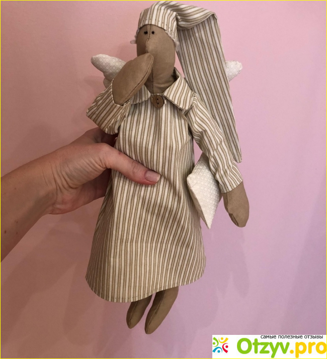 Шить было интересно, небольшие трудности наблюдались при изготовлении тонких, мелких деталей. Их очень сложно выворачивать. Хорошо то, что возможно шить как вручную, так и на швейной машинке. Для набивки брала наполнитель, оставшийся у меня от прошлых работ. Куколка получилась достойная, довольно большая, не стыдно подарить, если красиво упаковать. Я осталась вполне довольна, и конечно буду присматриваться и к другим товарам от данного производителя. Это мой первый опыт с Тильдами, и я думаю не последний. Рекомендую в качестве приятного подарка для себя или знакомых мастериц.