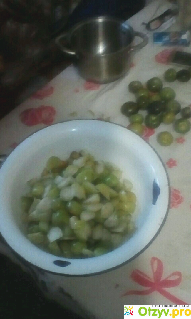 Физалис очищаем и обдаём кипятком, для того, чтобы липкая масса ушла с ягод. Потом надо нарезать на дольки .