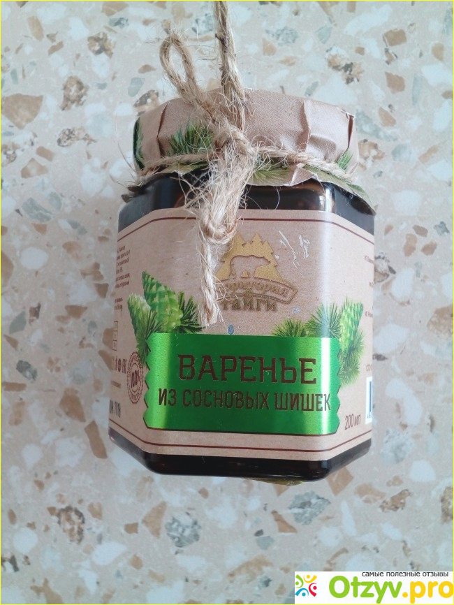Но варенье из сосновых шишек я увидела впервые. Подруга, вернувшись из отпуска, принесла в подарок. Производят такое чудо в городе Томск, варенье марки "Территория тайги". А изготавливает его индивидуальный предприниматель Левихина Анастасия Валерьевна.