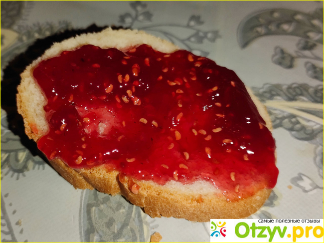 Масса густая непрозрачная желеобразная. Чувствуется проварка. Это даёт немного пресный вкус. Понятно, это же варенье. Но «Магнит»-овское было как свежая малина с сахаром.
