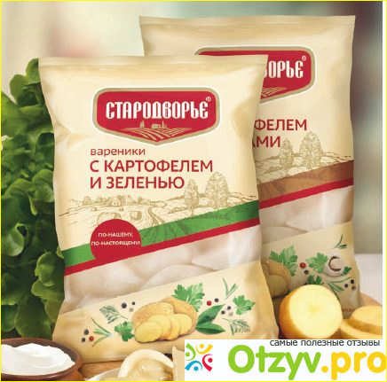 От вареников с зеленью отличаются только цветом полоски наискосок упаковки. Вареники ровненькие, небольшие.