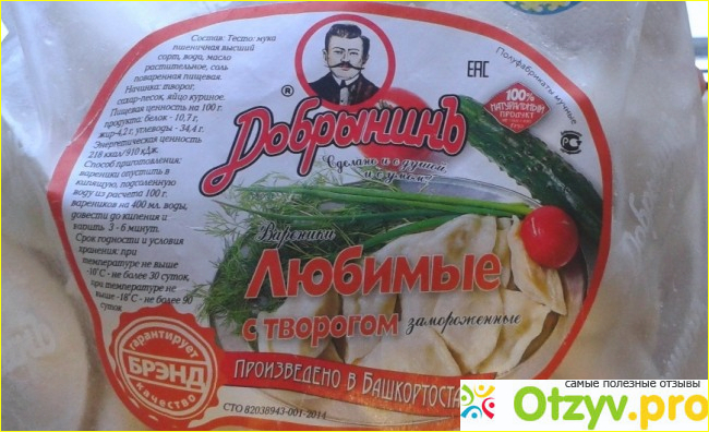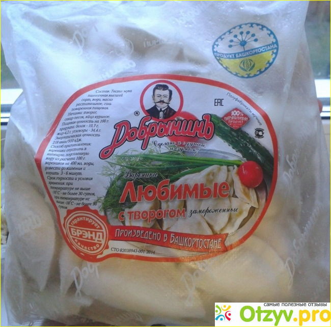 А сейчас особенное спасибо торговой марке «Добрынинъ» за их вкусные вареники с творогом. И ведь правильное название дали "Любимые" – один раз попробуешь, и они твои любимые уже навсегда. Да и стоят они не так уж и дорого, относительно того, что творог нынче тоже не самый дешевый продукт. Но здесь на твороге не поскупились, положили его достаточно, вареник не пустой, он целиком внутри состоит из начинки. И творог в начинке вкусный, в меру сладкий, нежный, нет никаких посторонних запахов, нет «кислинки», как бывает у начинающего портится творога. И творог однородный, приятный, а не зернистый, без комочков. Состав на упаковке особенно радует – ничего лишнего, как ни на есть натуральный продукт.
