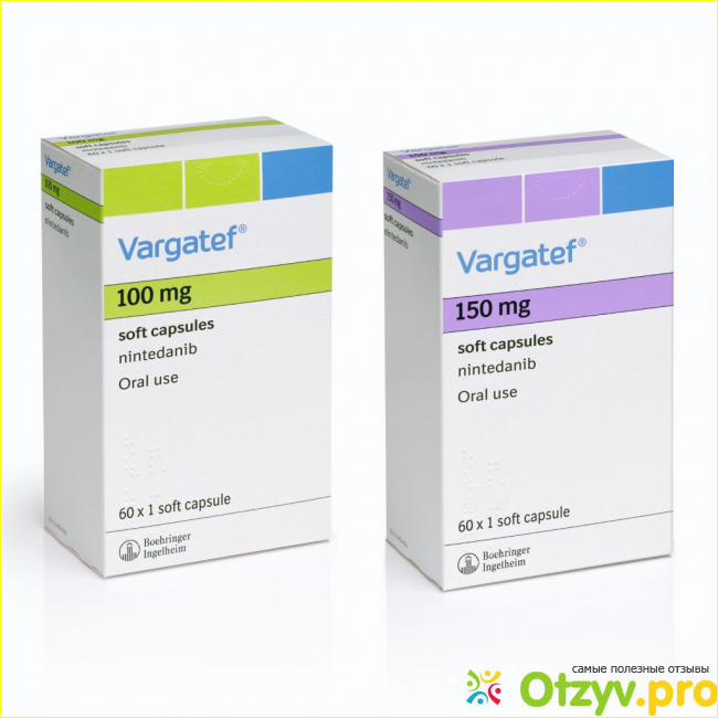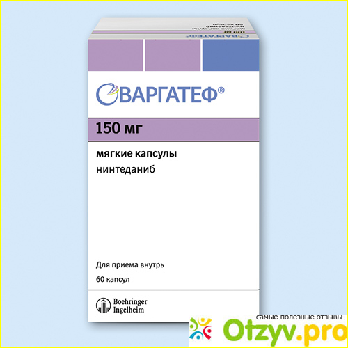 Варгатеф – противоопухолевый препарат, относится к протеинтирозинкиназы ингибиторам, активным веществом является нинтеданиба этансульфонат в дозировке по 100 мг, выпускается в форме капсул для приема внутрь. Данное вещество вносит свой существенный вклад при лечении онкологии, для приостановления роста, прогрессирования и метастазирования злокачественной опухоли. Данный процесс запускается специальными факторами, которые помогают облегчить доставку кислорода в сосудистую сетку, противодействует образованию новых опухолей, приводит к замедлению уже существующих злокачественных клеток.