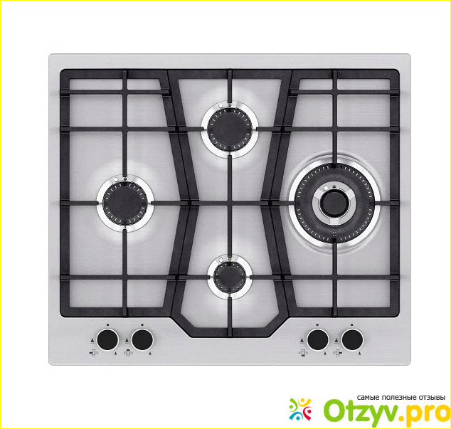 Достоинства: чугунная решетка, прикольный дизайн, большое пространство между конфорками.