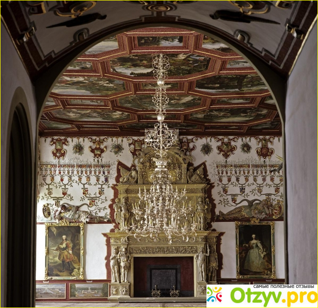 Великолепный камин с необычными рельефами и фигурами также являются ярким украшением рыцарского зала.