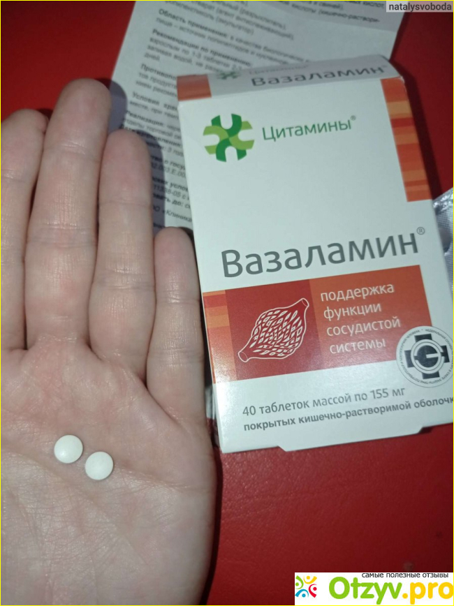 Я расскажу вам немного о самом препарате Вазаламин: БАД, которая содержит активные вещества - комплекс полипептидов и нуклеиновых кислот, полученных из аорты крупного рогатого скота и свиней. Вазаламин - эффективный препарат, рекомендуемый при различных заболеваниях и состояниях, связанных с повреждением внутренней стенки кровеносных сосудов.