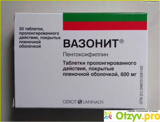 Одним из препаратов для лечения нарушений кровообращения является Вазонит. Выпускается в форме таблеток, активным веществом является пентоксифиллин в дозировке по 600 мг. Очень подходящий вариант для пентоксифиллина с длительным действием. Назначается амбулаторным пациентам с признаками психоорганического синдрома сосудистого происхождения и нарушениями мозгового кровообращения с признаками снижения познавательной способности в целом.