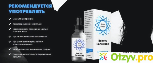Насыщенная половая жизнь – это пожалуй одни из самых важных аспектов гармонии в семье. Регулярность половой жизни оказывает благоприятное действие на физическое здоровье и семейное благополучие. Регулярный секс это снятие напряжения, снижение депрессии и разного рода раздражителей. Препарат Вектор Соломона это новинка в области оздоровления мужского организма состоящая из натуральных ингредиентов, которые увеличивают мужскую силу при снижение или отсутствие потенции. Препарат норвежского производства и активно распространяется в Европе и Америке. На российском рынке средство для потенции представлено не так давно, поэтому продажа осуществляется через официальное представительство.