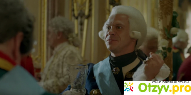 Сам Пётр III в этой картине получился отменным. Доказано, что он действительно шокировал неоднократно своим поведением весь двор, особенно, если верить воспоминаниям самой Екатерины. Скрипка, солдатики, выражения лица - всё передано хорошо.(Хотя купание в фонтане меня смутило и просто рассмешило) Жаль только, что про повешенную крысу словом не обмолвились, ибо это дополнило бы образ. Также хочу отметить куклу в виде Петра III, над которой потешались солдаты: достаточно мило и забавно.