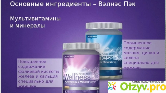 А ведь так хочется всегда выглядеть красивой, в каком бы возрасте не быть. Полноценно и правильно питаться также не у всех получается, потому как нету времени готовить себе пяти разовое питание, а соответственно организм не дополучает необходимых витаминов и полезных веществ, а даже наоборот получает вредные с неправильным питанием. В таком случае страдает организм как внутри, так и снаружи, касается это активной и умственной деятельности. Чтобы женщина была в гармонии с собой, нужно восполнять организм необходимыми полезными веществами, а для этого хорошо подойдут витаминные комплексы. Среди таких комплексов большой популярностью пользуется Вэлнэсс Пэк. Многие женщины уже проверили его действие на себе и оставили отзывы о впечатлениях, которые у них сложились об этих витаминах.
