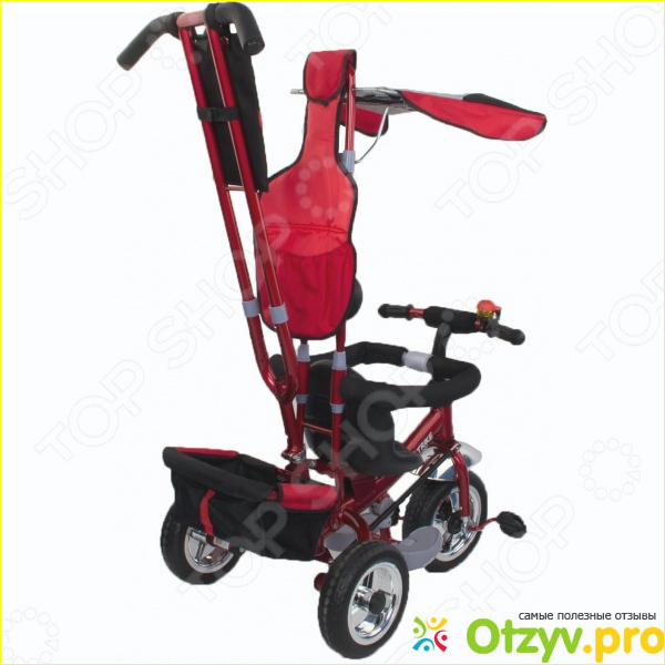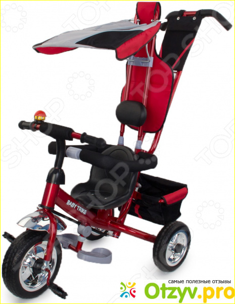 Велосипед для малышей TRIKE 5173A имеет весь необходимый набор комплектующих, который бы мог пригодиться малышу и его маме во время прогулки. Во-первых у велосипеда над головой ребенка есть специальный козырек, который сможет в любое время защитить его от сильного солнышка. Козырек обшит специальной плотной тканью. которая легко моется и при этом сильно не нагревается на солнышке. При желании этот козырек можно сложить под спинку ребенка и он ему совершенно не будет мешать.