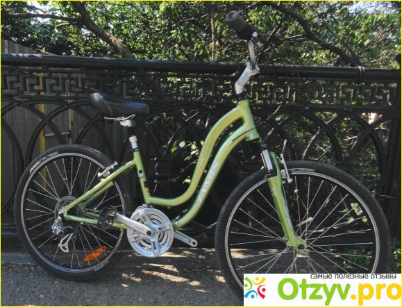 Очень впечатлили колеса. Широкая площадь касания с землей дает уверенность в вождении этим велосипедом, а 21 скорость помогает супруге без труда проезжать и взбираться на любые вершины во время наших поездок.