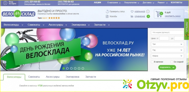 В этой статье речь пойдет о сайте, который называется Велосклад. ру. Магазин больше известен конечно же жителям Москвы. Так как в их городе находится несколько пунктов самовывоза. Но сайт осуществляет доставку товаров по всей России.