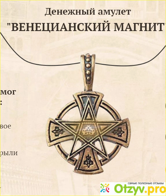 Очень часто в сети появляется информация о разного рода товарах, имеющих чудесную силу. И вот еще один. Венецианский амулет имеет вымышленную красивую легенду и продавцы утверждают, что он гарантированно поможет вам разбогатеть.