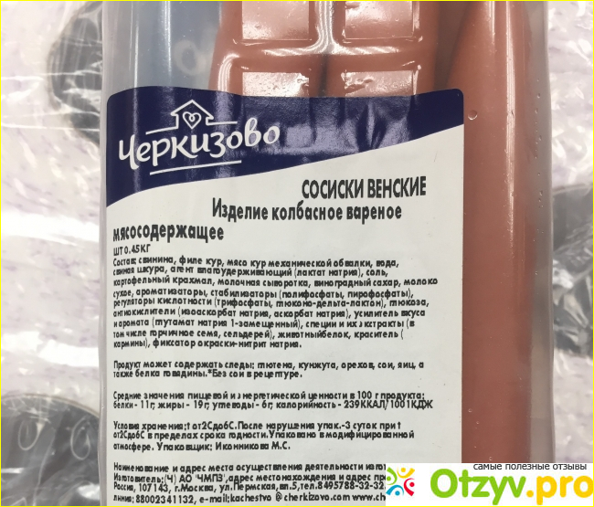 Венские сосиски Черкизово я купила в магазине возле дома. Производитель мне знаком, отношусь к нему положительно. Знаю, что продукция Черкизово без ГМО и сои.