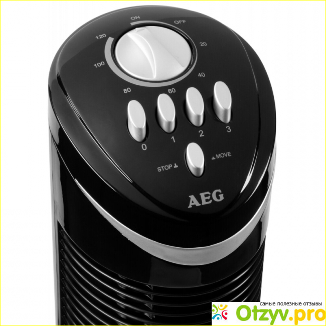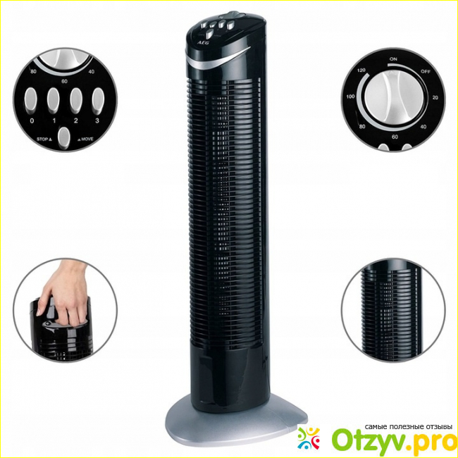 Вентилятор AEG T-VL 5531 создан на основании последних технических разработок. Он выглядит достойно, занимает минимум места, хорошо охлаждает воздух в различных помещениях. Вентилятор вертикальный, в высоту он составляет 75 сантиметров, при этом высота не меняется. При этом можно регулировать силу подачи воздуха, для удобства пользователей создано 3 режима. Во время обдува помещения, можно отрегулировать поворот вентилятора на 90 градусов, также можно отключить эту функцию. В настройках вентилятора предусмотрен таймер, с его помощью можно настроить выключение вентилятора в заданное время, например, когда человек заснет, чтобы расходовать электроэнергию понапрасну. Таймер можно установить максимум на 2 часа.