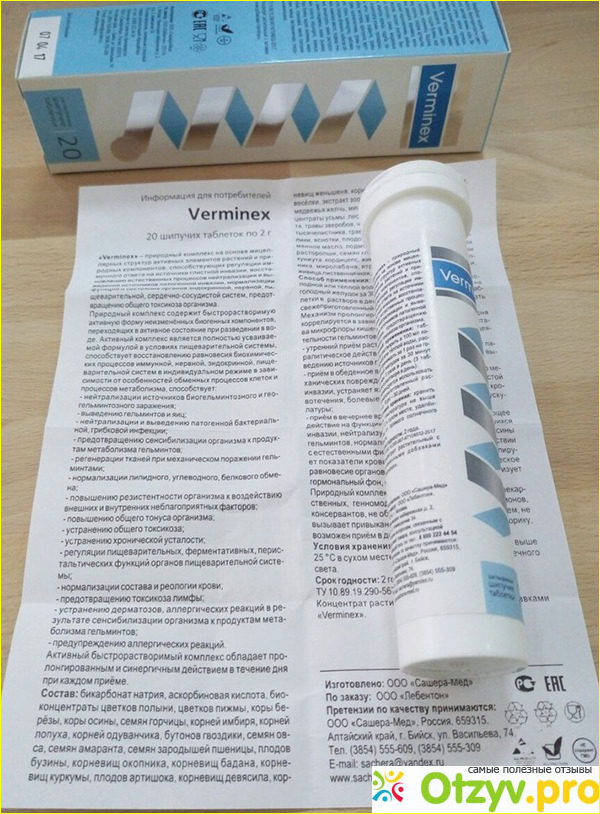 Как твердит лозунг производителей то Verminex это надежная защита от глистов и паразитов. Также данный препарат признан многими ассоциациями медиков и ученных а также способствует выведению таких глистов как гельминты и мельчайшие паразиты при этом очищается организм от шлаков и выводятся токсины, при этом защитные функции организма становятся выше и по отзывам спустя месяца курса приема данного средства многие увидели положительной результат и гельминты и паразиты больше не тревожат вас.