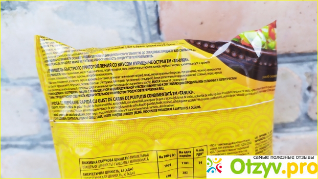 В составе полезного точно ничего нет, сплошная химия. Из натурального разве что только мука и совсем небольшое количество специй. Состав такой же, как у более дорогой вермишели быстрого приготовления "Мивина". Производитель не пожалел ароматизаторов и усилителя вкуса и аромата глутамат натрия, вкус получился отличный, хотя и благодаря химии.