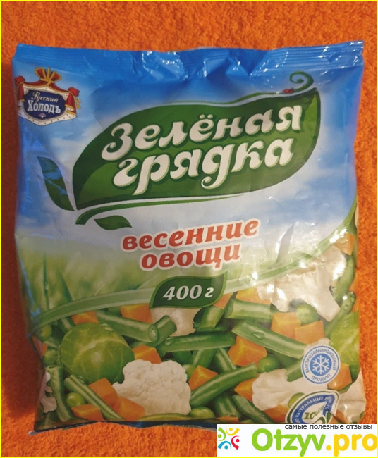 В последнее время я приноровилась готовить замороженные овощи. Это помогает мне снизить время на готовку и снимает лишние вопросы о качестве. Вместе с тем, заготовить большое количество продуктов с собственного огорода невозможно. Поэтому иногда я покупаю в магазинах овощные смеси быстрой заморозки. Недавно я обратила внимание на продукт ТМ “ Зеленая грядка” под названием Весенние овощи. Очень уж оно привлекло мое внимание. перед глазами сразу встала тарелочка свежих, только, что собранных овощей, их яркие цвета и неповторимый аромат. Пойдя на поводу у собственной фантазии я купила эту смесь.