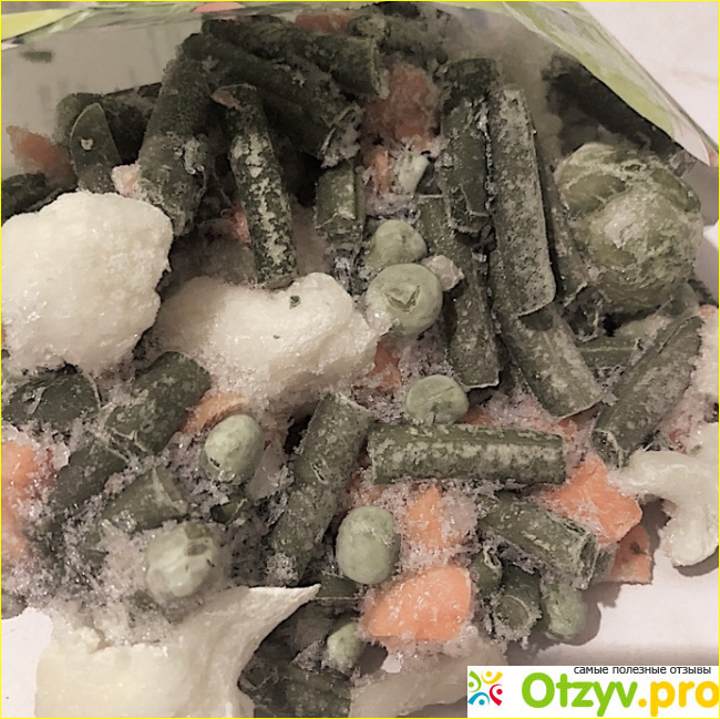 Придя домой я сразу открыла упаковку и мне очень захотелось отнести ее содержимое обратно в магазин. То что было в упаковке, никак не соответствовало красивой картинке, которой ТМ завлекала покупателей. Овощи обледенелые, много снега. Местами на них виднелась грязь. Готовить такое смысла нет, так как вкусовые качества испорчены.
