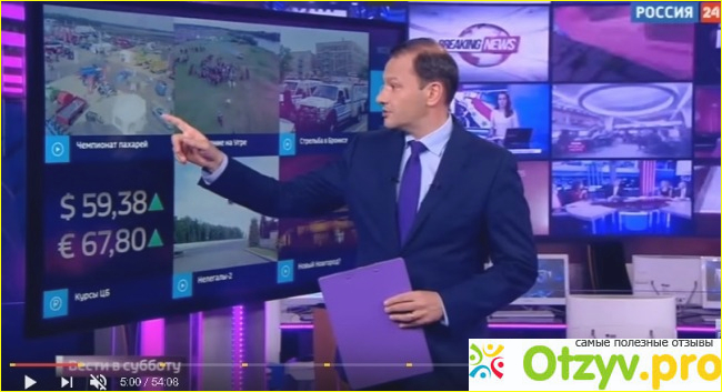 Новости включает в себя репортажи за субботу и то, что Брилев за неделю насобирал. Интересная у него жизнь. Говорит он медленнее, чем Зейналова.