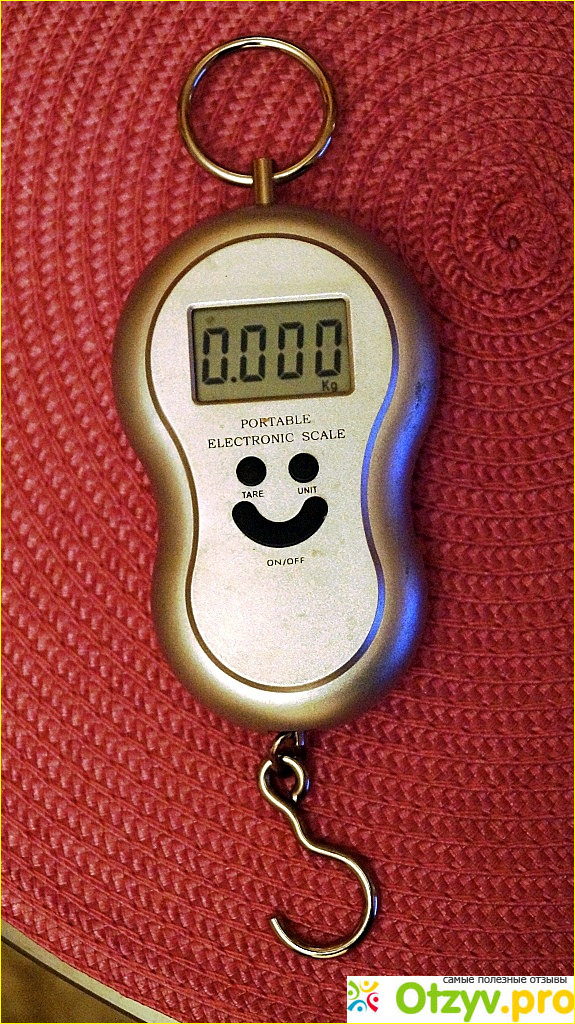 Весы небольшого размера, корпус их пластмассовый и имеет интересную форму. Такая форма позволяет удобно и надежно держать данные весы в руке при взвешивании необходимых продуктов или вешей. Сверху корпуса имеется металлическое колечко, снизу металлический крючок. Крючок и колечко изготовлены из довольно толстой проволоки, даже при тяжелом грузе не гнутся и не дефформируются. На лицевой стороне весов имеется жидкокристаллический дисплей, который показывает результаты взвешивания. Показываемые цифры довольно большие и хорошо читаются. На лицевой стороне весов расположены три кнопки для работы с весами, которые в комплексе похожи на смешную улыбку маленького человечка. Весы питаются от двух мизинчиковых батареек типа ААА, зарядки их зватает на довольно долгое время. За полтора года пользованием этим прибором батарейки мы не разу не меняли. Пользоваться данными весами очень легко, тем более к весам прилагается инструкция по эксплуатации на русском языке. Весы очень умные, они автоматически отключаются после одной минуты бездействия, ими можно определить вес нетто взвешиваемого груза без учёта тары, при перегрузке весов, а также при недостаточном заряде батареек сообщает об этом надписями на дисплее. Весы очень компактные и лёгкие, их легко брать с собой, к примеру на рынок или в магазин. Советую каждой хозяйке иметь у себя дома подобное устройство, очень удобное, практичное и качественное. Мы покупали данные весы за 500 рублей.