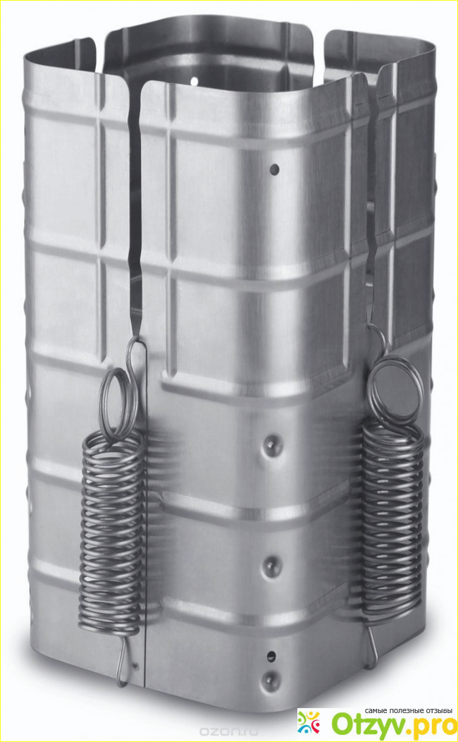 Что же представляет из себя этот прибор? Чаще всего это жестяная труба с прорезями по бокам и крышками с двух сторон, которые зажимаются пружинами, для обеспечения постоянного давления в процессе приготовления мяса.