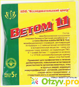 Разработчик этого средства - ООО НПФ "Исследовательский центр", что находится в Новосибирской области. Ветом - это мелкий белый порошок без запаха и без посторонних примесей. Он содержит в составе только одну бактерию - bacillus subtilis. Концентрация довольно большая - 1 млн КОЕ на грамм сухого порошка. Помимо главного действующего вещества, в составе есть крахмал и сахарная пудра. Это позволяет дозировать наиболее точно.