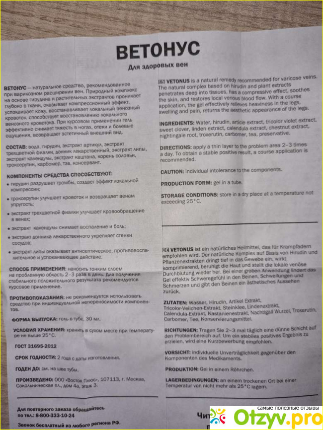 На поздних сроках беременности и первые месяцы после родов аномально отекла, на почве чего начали ужасно болеть ноги, появились очертания воспалённых вен. Ветонус заказала мама и вручила мне в очередной раз придя к нам с мужем в гости. И я ей за этот жест сейчас уже невероятно благодарна, поскольку она помогла мне избавиться от излишнего объёма в области икр и щиколоток, болезненных ощущений при ходьбе и прикосновениях к ногам, кожа тоже визуально стала выглядеть лучше, нормализовался цвет, спрятались вены, скорее начали сходить синяки и ссадины за счёт улучшения кровообращения и всяких жидкостей обменного процесса, кожа более упругая.