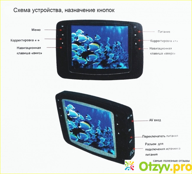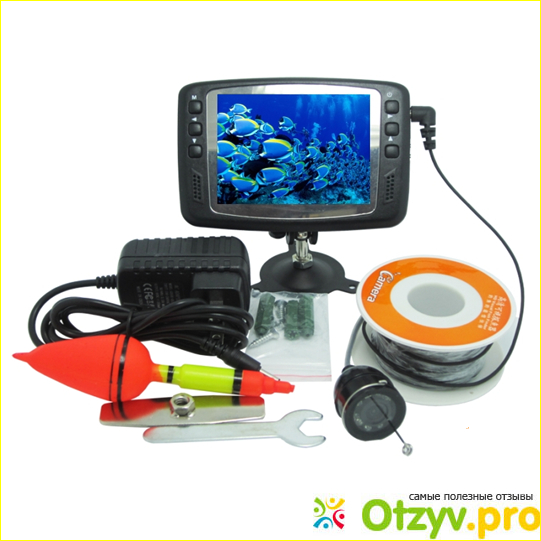 Устройство состоит из подводной камеры и монитора с дисплеем диагональю равной три с половиной дюйма. Камера позволяет довольно уверенно производить наблюдение за поведением рыбы в районе лова и информировать с помощью дисплея о происходящей оперативной обстановке. Так же стоит отметить такие технические характеристики устройства как разрешение экрана, которое равняется девятьсот шестьдесят на двести сорок, наличие многоязычного интерфейса, который можно установить на нужный вам язык. Потребляемая мощность в одну целую девять десятых вольта в комплекте с литиевой батареей емкостью две тысячи шестьсот милиамперчас, позволяет без особых проблем эксплуатировать ваш прибор до семи часов в непрерывном режиме, чего вполне достаточно для проведения полноценной дневной рыбалки.