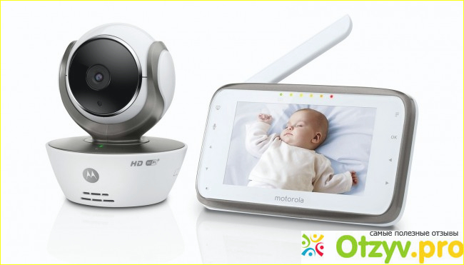 Есть в комплекте экран и сам приемник. Идет с высоким разрешением звука и видео, улавливает все, что происходит в диапазон до 300 метров. Весит мало, ребенка не раздражает и не тревожит.