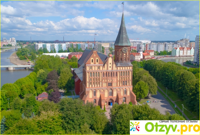 Отсюда открывается живописный вид на остров Канта, который считается главной достопримечательностью города. Можно обозреть Кафедральный собор во всем великолепии.