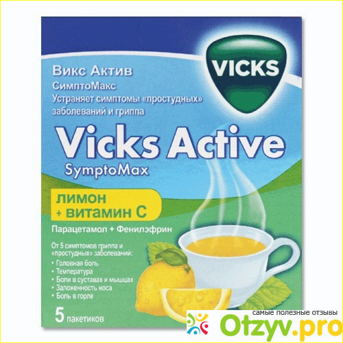 Схему терапии рекомендуется обсуждать с врачом, при каждом случае дозировка и кратность приема сугубо индивидуальная. Если действовать по инструкции, то содержимое одного пакетика саше необходимо растворить в горячей, но не кипящей воде объемом в 250 мл (один стакан), тщательно все перемешать и дать ему остыть. ПРинимать по одному пакетику через каждые 4-6 часа или по необходимости, но не более 4 пакетиков за одни сутки. Нельзя принимать лекарство более пяти суток в качестве обезболивающего средства, и не более трех суток в качестве жаропонижающего препарата. Если у вас симптомы сохраняются, тогда сообществ врачу, что он повторно провел обследование и уточнил диагноз. Викс-Актив – это очень хороший лекарственный препарат от европейского производителя. Удобная форма в виде порошка, который нужно заваривать, два активных компонента, которые относятся к категории нестероидных противовоспалительных средств. К качеству и эффективности нет никаких вопросов, переносимость хорошая, но очень дорогостоящий, поэтому если вам не карману, можно выбрать дешевле.
