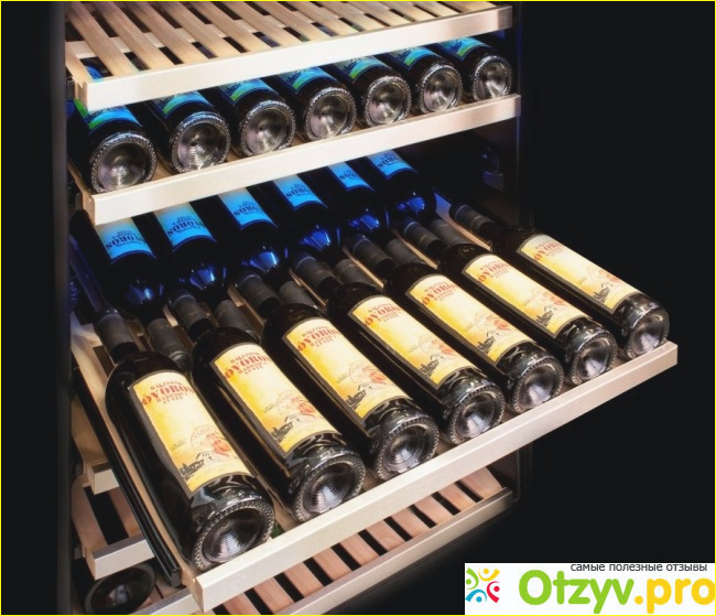 Внутри есть освещение дополнительно вмещает в себя 7 полок которые работают по направляющей то есть удобно вытащить ту или другую бутылку. Полки сделаны из пород дорого дерева а дверь тонированная чтобы не пропускать лучи ультрафиолета также температуру вы можете выбрать сами от 5 и до 22 градусов что выставляется и видно на панели управления которая у данной модели сенсорная. Мы рекомендуем данную модель винного шкафа для вашего дома или профессионального помещения.