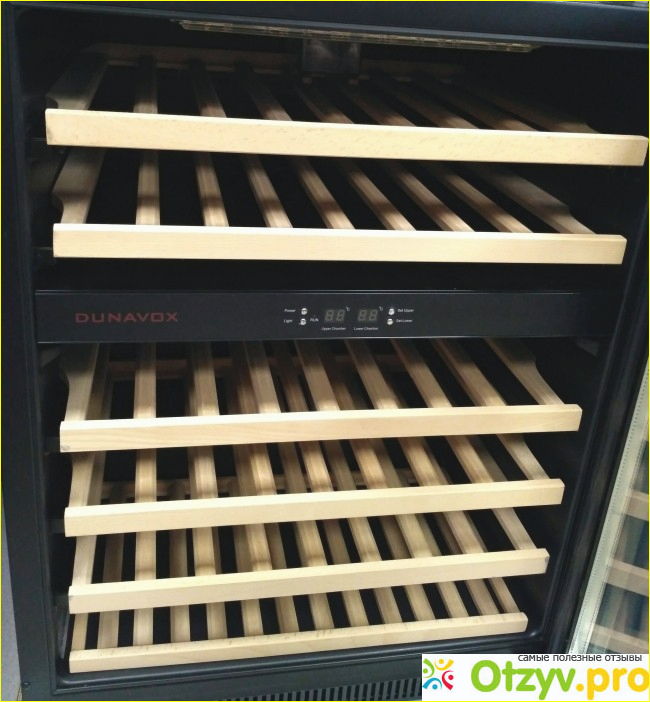 Нашел у них модель на почти 50 бутылок с двумя зонами охлаждения. Ну и различными приятными наворотами - внутренним вентилятором для циркуляции воздуха (с угольным фильтром причем), полками из настоящего бука, хорошим диапазоном температур - от 5 до 18 градусов. Внешний вид строгий, классический - как почти у всех шкафов Dunavox.