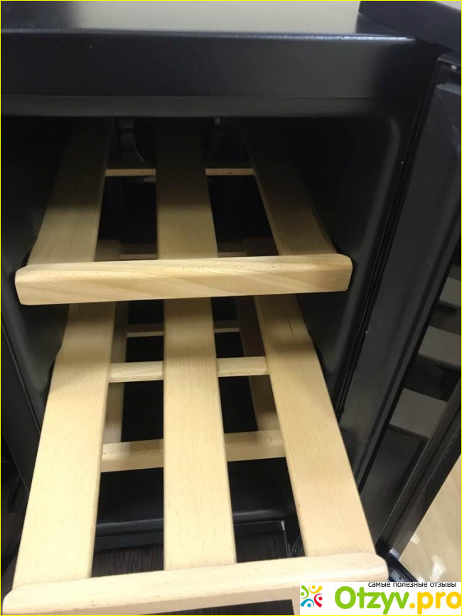 Вообще этот шкаф отлично защищает вино от его главных врагов - тепла, света и тряски. Температурный режим можно выставить вручную, постоянно работает индикация температуры, дисплей электронный и есть подсветка. Общий объем камеры - 21 л, вмещает себя до 8 бутылок вина. Дверь модели со вставкой из специального тонированного стекла, что позволяет видеть свою коллекцию и ненавязчиво хвастаться перед друзьями, не открывая его. Также, тонированное стекло полностью задерживает губительный для напитка ультрафиолет. Полки изготовлены из дерева и полностью обеспечивают неподвижность бутылок.