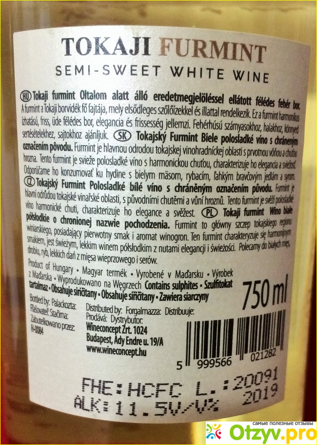 Хочу рассказать о белом полусладком вине Tokaji furmint, которое произведено в Венгрии. Это вино с мягким вкусом и легким приятным ароматом.