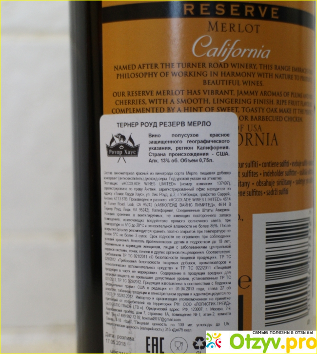 Сегодня речь пойдёт о полусухом вине торговой марки Accolade Wines под названием Вино Turner Road Reserve Merlot. Вино защищенного географического указания, а следовательно должно быть достаточно высокого уровня.