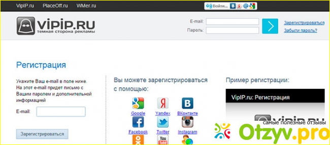 Сайт Vipip ru предлагает услуги не только для заказчиков, но и для исполнителей. В этом случае на сайте нужно перейти в графу под названием Заработать. Для регистрации нужно указать электронную почту и придумать пароль.