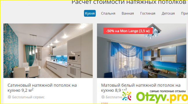 Мне понравилось, что на сайте присутствует примерный калькулятор на изделие. Просто необходимо указать квадратуру комнаты, и получится цена, от минимальной до максимальной суммы. К этому числу можно прибавить количество светильников и в результате можно рассчитать примерную полную стоимость изделия и установки, даже не выходя из дома.