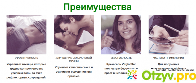 В обзорных статьях указывается, что Virgin star - это крем, который составлен из натуральных природных компонентов и основным действием которого является подтяжка интимных мышц.