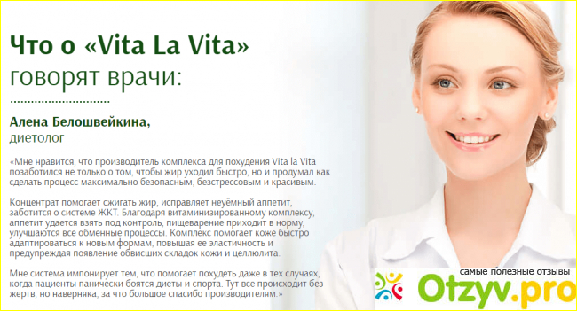 Дамы в погоне за идеальными формами готовы пойти на многое, даже на оперативное вмешательство. Препараты для похудения считаются самой безопасной альтернативой радикальным мерам. Но такие методы помогают далеко не всем, поэтому мы часто встречаем негативные отзывы, мол пила, пила, а в результате, только голова кружиться. Конечно, от индивидуального воздействия на лекарство ни кто не застрахован, но стоит понимать, что львиная доля средств это работа с одной проблемой, а комплекс это охват проблемы со всех сторон. И вообще, если уже решились похудеть, то вставайте с дивана и начинайте двигаться, сидя на попе жир не растопишь. К тому возраст, также говорит за себя. Если до 35 вес держался на одном уровне сколько ты не лопай, то после уже начинает откладывать на бочках и скинуть даже пять килограмм становиться трудно. Комплекс Vita la Vita, как раз способствует восстановлению всех нарушенных обменов организме и ускоряет липидный обмен.