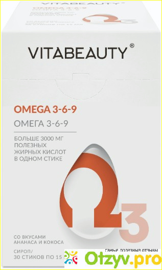 Витабьюти с омегой 3-6-9 стал просто спасением – всего 1 стик вкусного сиропа в день, и никаких огромных капсул! Вкус — ананас и кокос, очень приятный. Принимать просто - по 1 стику 1 раз в день во время или после еды.
