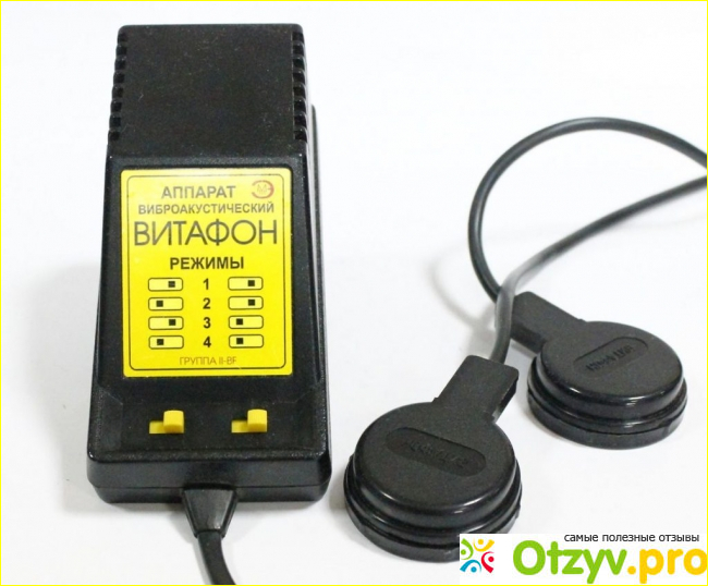 4. "Витафон - 2". Сам по себе этот аппарат создавался производителями, как прибор для осуществления лечения в клинических условиях. Но его, однако, с успехом применяют и в домашних ситуациях лечения. В состав его средств входит - 2 сдвоенных виброфона, 1 - одиночный, матрац с 8 виброфонами и ИК-излучатель. Этот вариант прибора - как бы синтез "Витафона - ИК" и "АВитафона - Т". Лечиться им можно значительно быстрее.