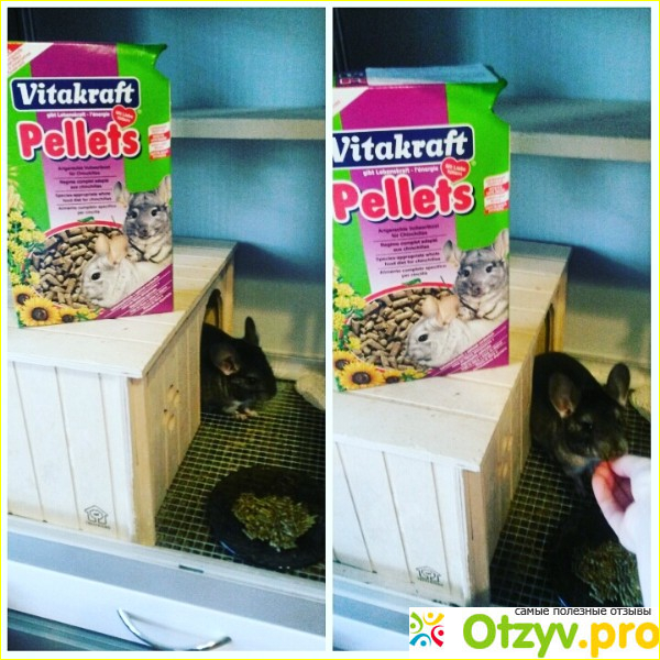 Юрий. Шиншиллы живут у нас уже более четырех лет. За это время кое-что узнал и многое узнал о правильном содержании этих животных в доме. Его стали есть, чтобы накормить не сразу, а 2 года назад. Питание доступное: от 95 до 125 рублей за упаковку. (Картонная коробка весом 400 грамм) нашей пары хватит примерно на 2 недели. Мы смешиваем эту еду с другой (тоже Витакрафт), плюс я нахожусь в стране моркови и яблок, шиповника, лепестков роз, все это добавляем в корм в качестве угощения. Естественно, его съедают сразу, а гранулы остаются на потом. В течение ночи, чтобы поесть все. Ешьте эту пищу с удовольствием. На фотографиях вы можете увидеть нашу мышь возле чаши. Когда в семье шиншиллы есть дети, они могут работать в том и эти гранулы начинают кормить из миски, чтобы украсть. Да, долгое время использования, я не заметил никаких недостатков. Проблемы с пищеварением у животных возникают не сразу. Шерсть хорошая и густая. Поэтому эту диету я рекомендую всем.
