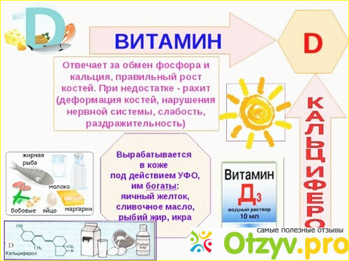 Витамин Д (кальциферол) - необходим организму для лучшего усвоения кальция, а так же для профилактики рахита и остеопороза. Витамин Д просто необходим для нормального роста костной ткани, способствуя отложению в ней кальция и препятствуя ее размягчению. При помощи витамина Д происходит всасывание в кишечнике не только кальция, но и фосфора и магния, которые так же являются необходимыми для организма микроэлементами.
