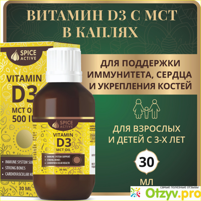 Витамин D3 в каплях от бренда Spice Active я покупала для себя и дочки. Подумала, что будет отличным подспорьем для поддержания здорового иммунитета. БАД брала впервые и мне очень понравилось, что конкретно этот идет в форме капель, это гораздо удобнее, особенно для ребенка.
